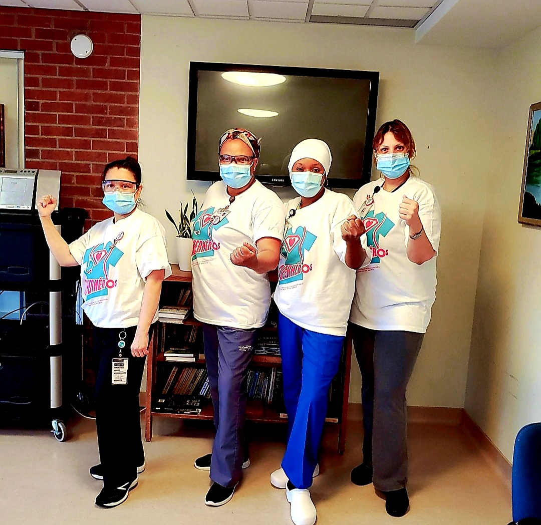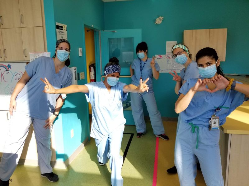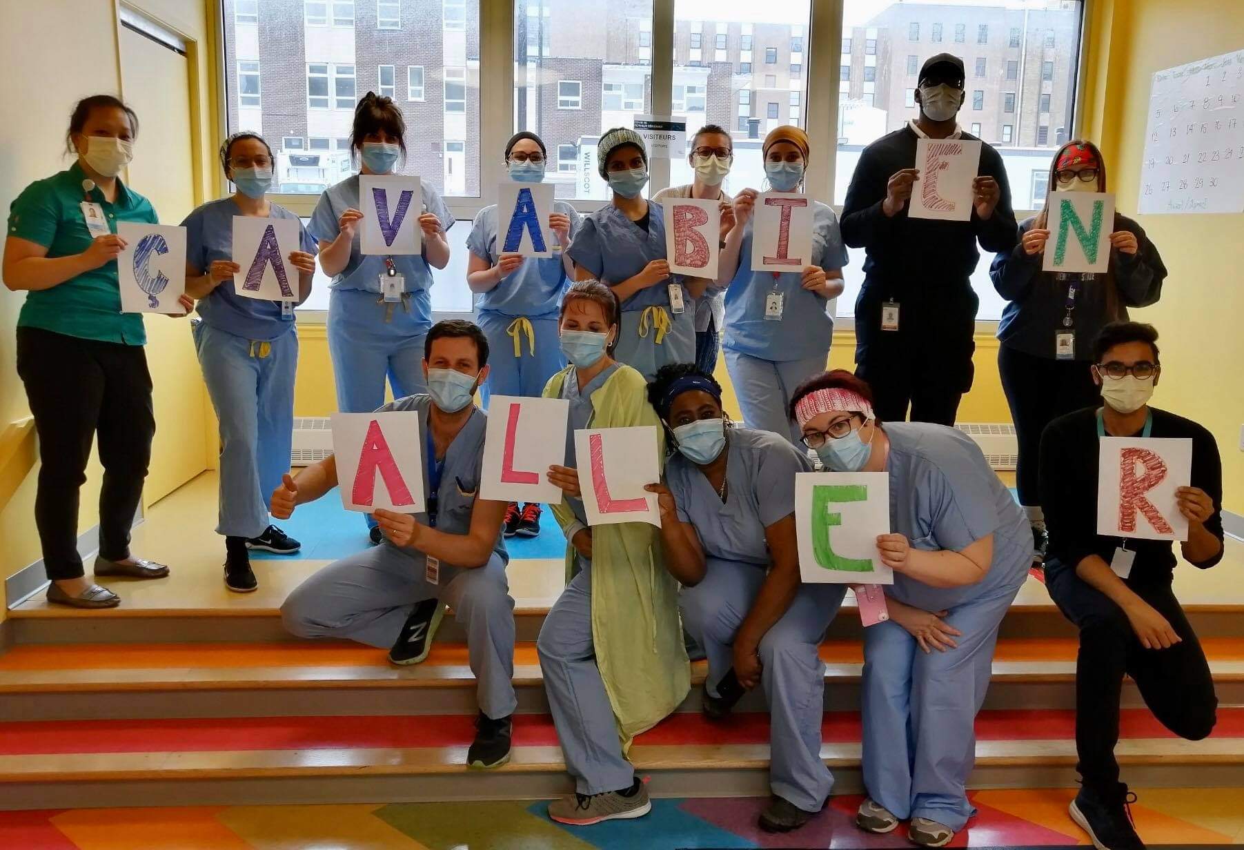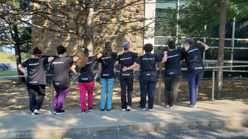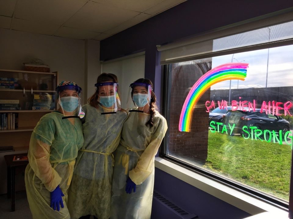 Individual leadership was brought out in each one of us while still working as a team to provide the best strength-based nursing care to every patient walking through our clinic. Whatever fears we had in the beginning dissipated very quickly thanks to our extraordinary capacity to adapt to constant change. Working together daily to improve the screening process and the quality of care, our team has proved out to be not only professional, but also very dedicated and caring. Place: COVID-19 screening clinic, pavilion N (JGH) Photo taken by: Justine Amiot | Forever united, forever positive and forever winning when faced with new challenges! Starting our days with positive vibes and big smiles throughout this pandemic has helped us look forward to the future and support our team, as well as our patients. We can't go wrong with a cheerful attitude! Place: COVID-19 screening clinic, pavilion N (JGH) Photo taken by: Mildred Clement | We grow together and flourish together. Every day, we find happiness in a wonderful work environment that is based on collaboration, mutual support and a lot of enthusiasm. The rainbow of optimism always shines in our eyes. Place: COVID-19 screening clinic, pavilion N (JGH) Photo taken by: Tammy Dee Shields |