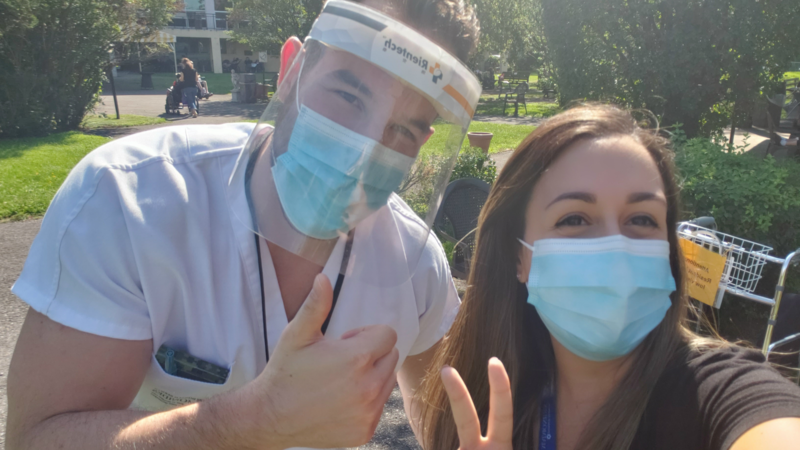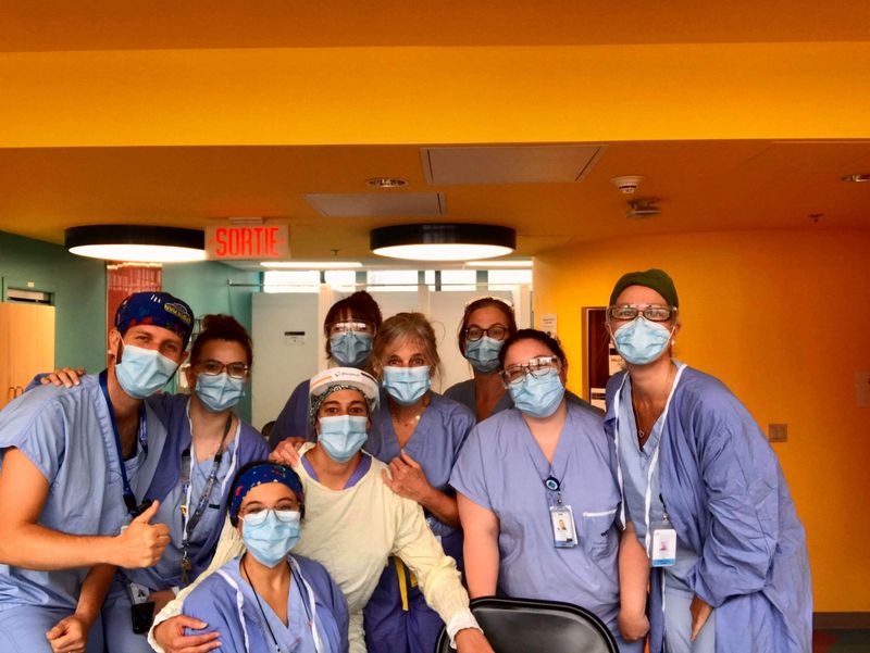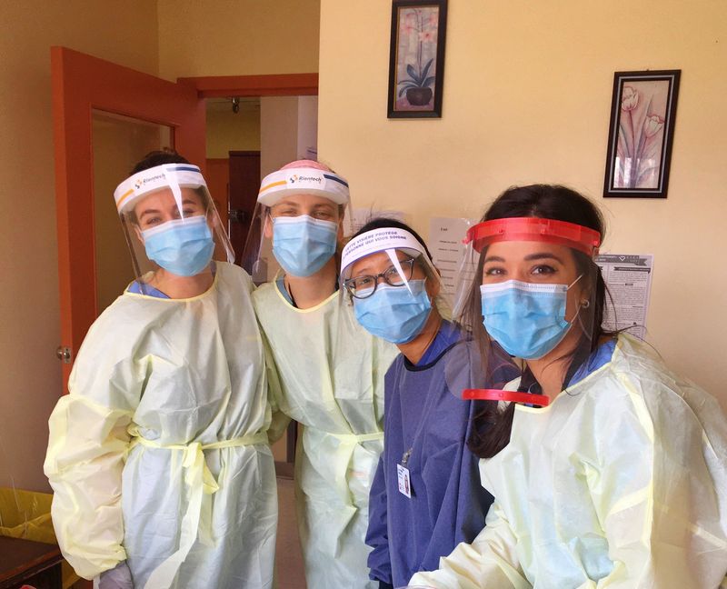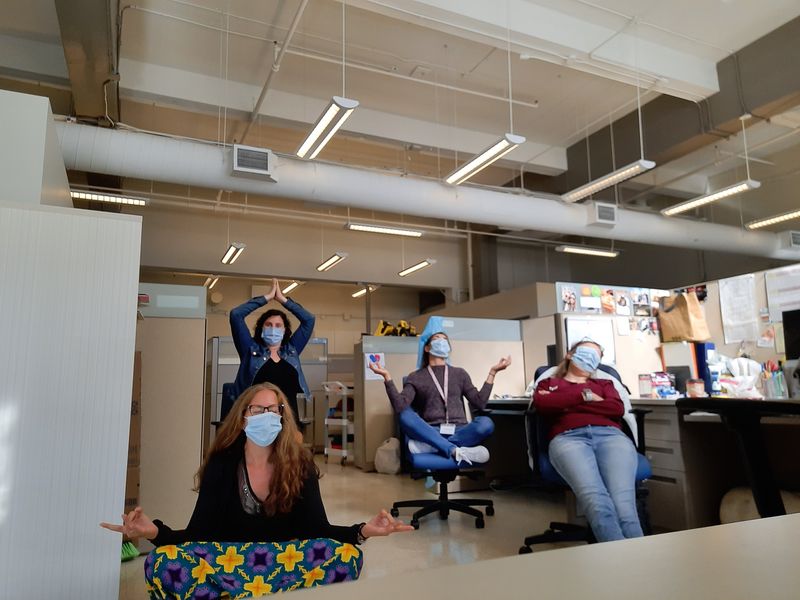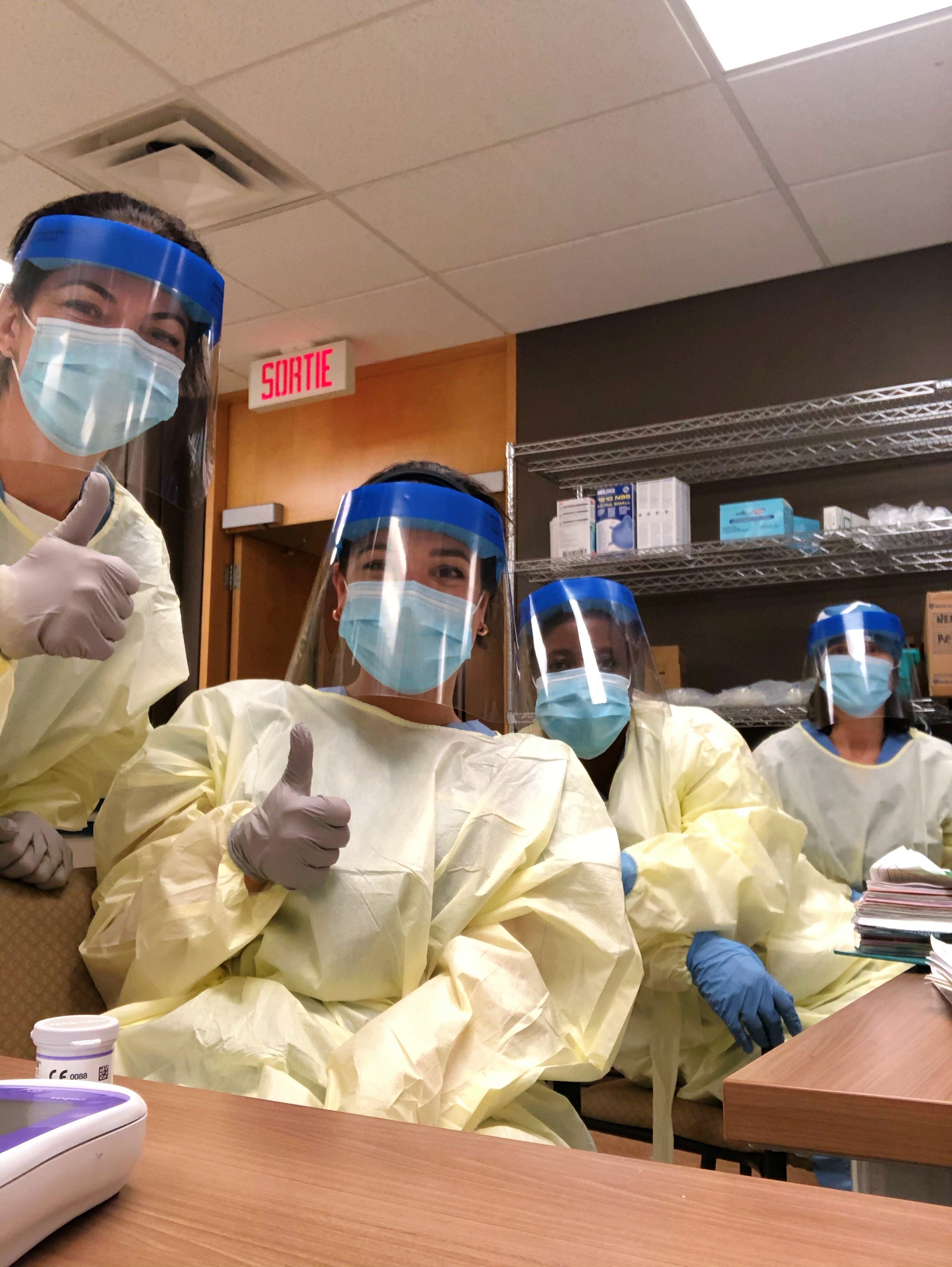Individual leadership was brought out in each one of us while still working as a team to provide the best strength-based nursing care to every patient walking through our clinic. Whatever fears we had in the beginning dissipated very quickly thanks to our extraordinary capacity to adapt to constant change. Working together daily to improve the screening process and the quality of care, our team has proved out to be not only professional, but also very dedicated and caring. Place: COVID-19 screening clinic, pavilion N (JGH) Photo taken by: Justine Amiot | Forever united, forever positive and forever winning when faced with new challenges! Starting our days with positive vibes and big smiles throughout this pandemic has helped us look forward to the future and support our team, as well as our patients. We can't go wrong with a cheerful attitude! Place: COVID-19 screening clinic, pavilion N (JGH) Photo taken by: Mildred Clement | We grow together and flourish together. Every day, we find happiness in a wonderful work environment that is based on collaboration, mutual support and a lot of enthusiasm. The rainbow of optimism always shines in our eyes. Place: COVID-19 screening clinic, pavilion N (JGH) Photo taken by: Tammy Dee Shields |