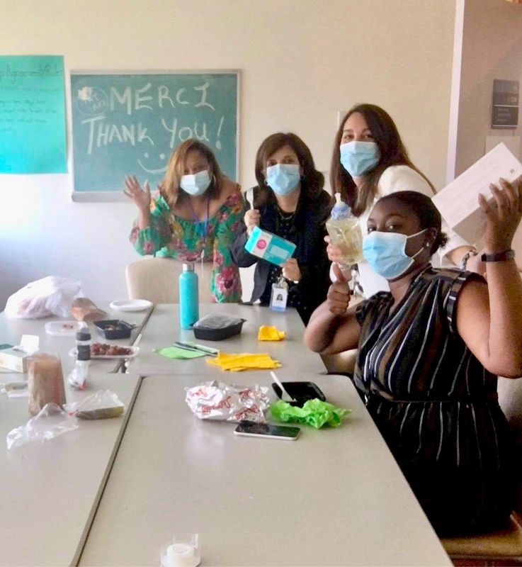 Having to say goodbye to the creator of Decarie Square Dream Team was most difficult. Karine was a true inspiration to us all. Even through many daily difficult challenges in the beginning, Karine always had a calm and positive demeanor. Her contagious smile reflects on us all. We could not say au revoir without a proper send off. A massive cake with her picture on it and a few other gifts were given to her to her surprise.