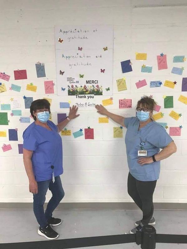 We needed to add more color and cheer. This is the walk-in area where all the clients pass through to get vaccinated. Something for them read while they wait in line. All staff was on board with the idea.Cue cards were handed out to the staff asking them to write a few words of gratitude and appreciation we felt towards our managers and each other. It then was extended to clients who were more than happy to write a few words of thanks and gratitude towards the staff.