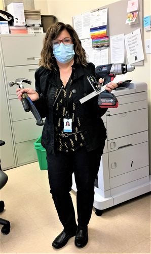 Une journée typique ici en pédopsychiatrie: S'il a besoin d'être réparé, appelez Elvira Ammendolea! Elle est toujours protégée, toujours préparée, toujours prête et toujours souriante!