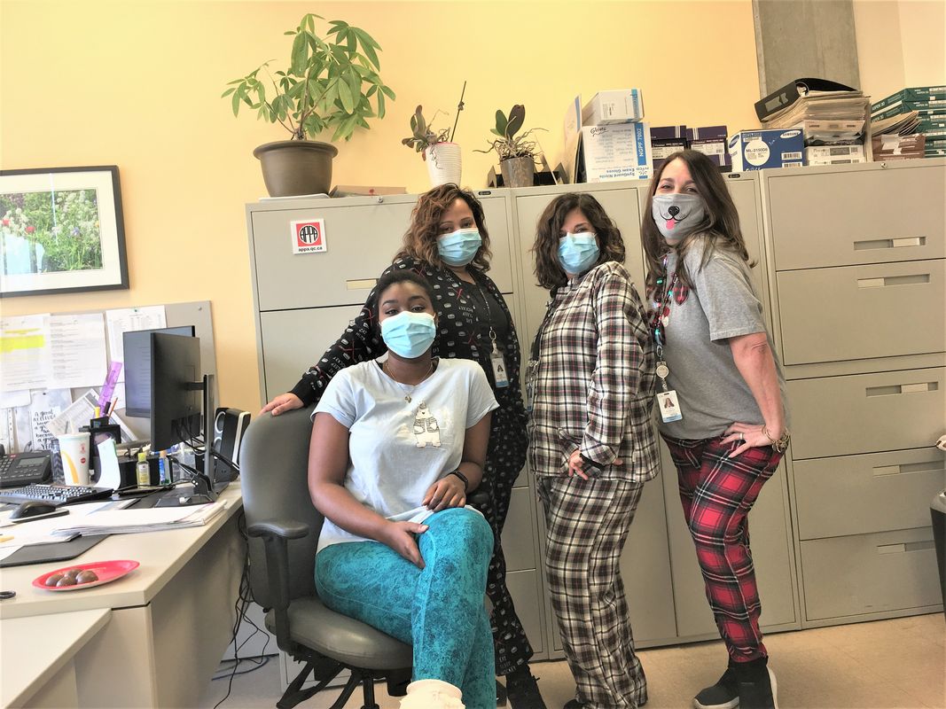 Pajama Day in Child Psychiatry at the JGH: Lorianne Edwards, Nichol Roach, Elvira Ammendolea, Anita Perrone.